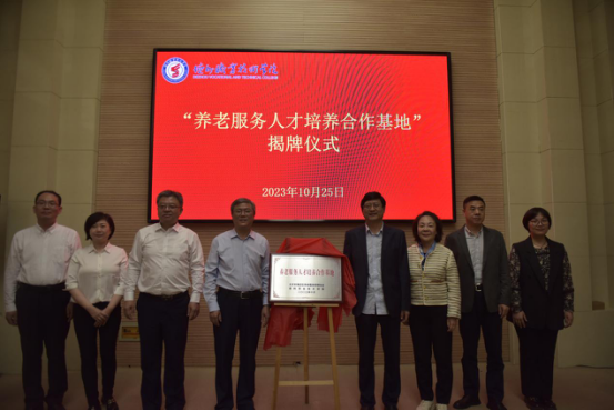 座谈会上,政校企三方围绕拓宽合作领域、明确人才培养方向、组建课程团队等方面进行了深入探讨,签署了《养老服务人才培养合作协议》,并共同为“养老服务人才培养合作基地”揭牌。