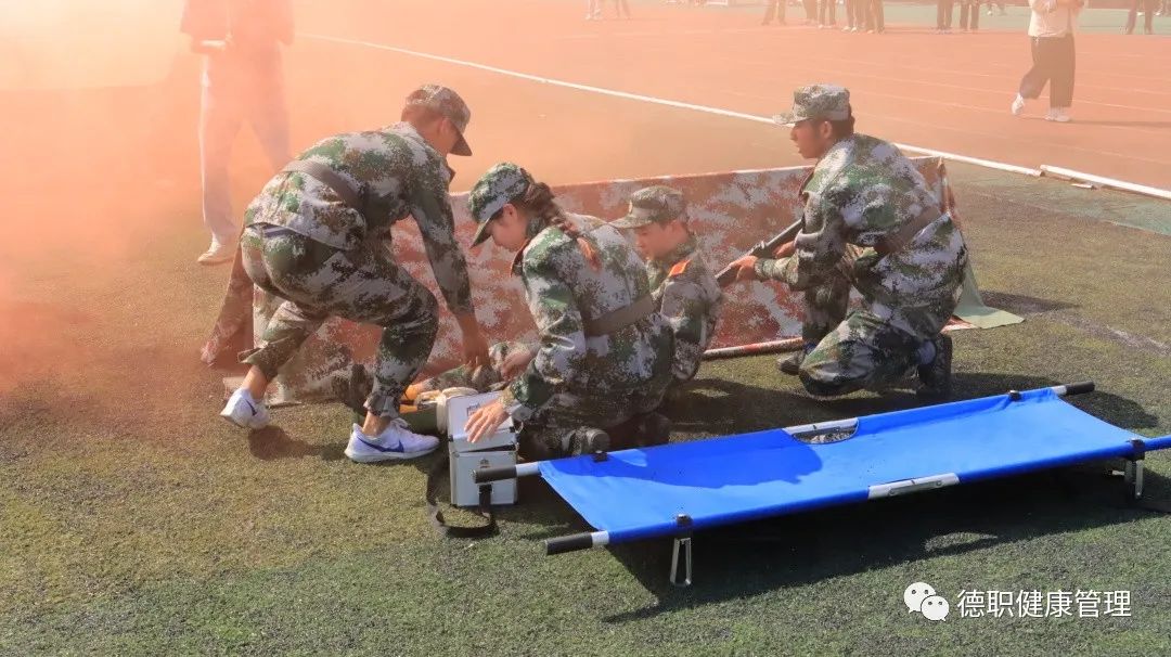 表演在严肃庄重的升旗仪式中拉开序幕。在随后进行的分列式汇报表演中,各连队学员们喊着嘹亮的口号、迈着铿锵的步伐,英姿飒爽地走过主席台,接受学校领导和老师们的检阅;军体拳、擒敌拳表演中,一个个整齐划一的动作让人眼前一亮,一声声响彻云霄的口号振奋人心;战术表演中,军训学生全副武装,匍匐前进、战场救护,让师生们热血沸腾。
