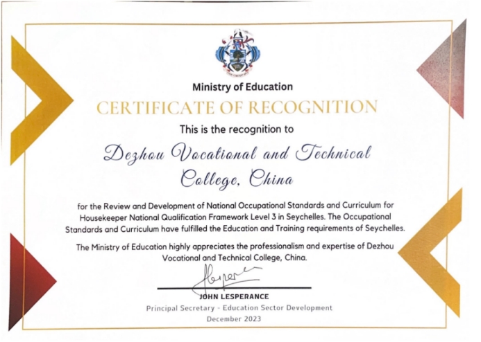国际交流合作取得新进展,完成了塞舌尔家政服务技术员Ⅲ级标准开发项目;与日本东京福祉大学、台湾辅英科技大学均有深入合作。选派两名教师赴德国系统学习德国双元制职业教育体系及方法。